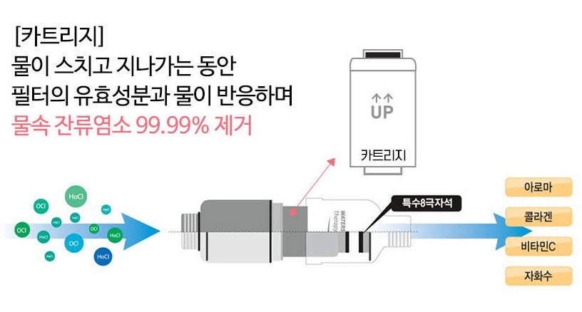 카트리지를 물이 지나가며 잔류염소 99.99%제거